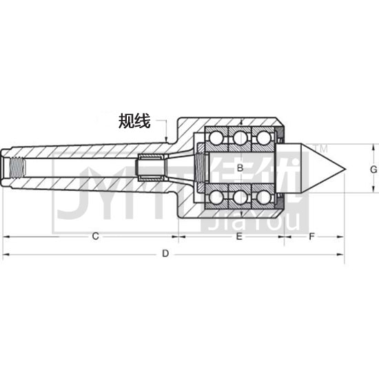 69-203-518~528:特點:·精度:±0.0001"·3個配套的角接觸軸承支承主要的頂尖負(fù)荷部分·特殊的頂尖頭部延伸到柄部位置用以增加剛性,減小頂尖變形和避免振動·鋼護(hù)罩和密封圈組合起來保護(hù)軸承·頂尖部是高碳合金鋼加熱處理到HRC61-63·角度:60°(公差:+15'/-0')·軸承是終生潤滑式·減小的圓頭直徑用于增加刀具后隙