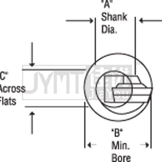 A=柄徑B=最小鏜孔C=對邊距離D=全長E=中心到開刃尖處